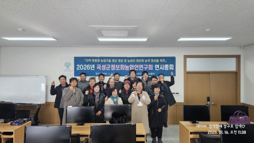 [곡성군] 곡성군정보화농업인연구회, 연시총회 및 맛다곡성 가공공장, 실증포 견학 곡성군정보화농업인연구회, 연시총회 및 맛다곡성 가공공장, 실증포 견학 연시총회 후 단체사진 오늘 오전 10시 30분 곡성군농업기술센터(소장 서연남) 2층 정보화교육장에서 곡성군정보..... 2026-01-16