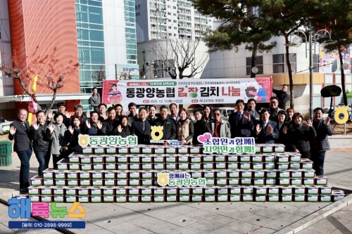[동광양농협] 김장 김치 나눔행사 함께하는 나눔, 더 따뜻한 지역사회 [[동영상]] 동광양농협(조합장 이돈성)은 12일 하나로마트 대형점에서 ‘동광양농협 김장 김치 나눔’ 행사를 열고 지역사회와 따뜻한 온정을 나누며 지역 농협으로서의 사회적 책임을 ..... 2025-12-13