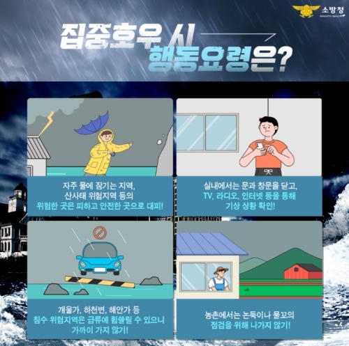 고흥소방서, 집중호우 시 안전수칙 홍보 고흥소방서(서장 서승호)는 여름철 호우로 인한 피해를 최소화하기 위해 집중호우 발생 시 행동 요령 안내에 나섰다. 최근 기상 전망에 따르면, 북태평양 고기압 강화로 인해 올 여름철..... 2024-06-26