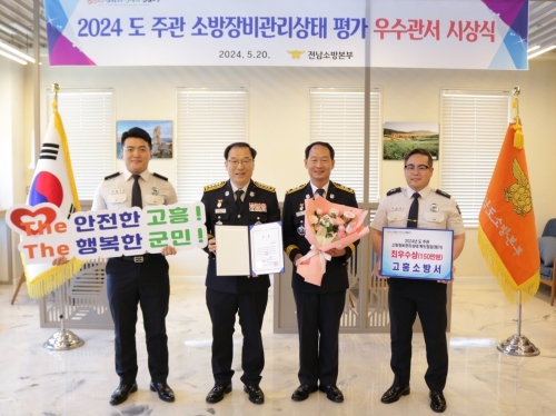 고흥소방서, 도 주관 소방장비 검열평가 ‘최우수’관서 선정 사진 설명 고흥소방서(서장 서승호)가 전라남도소방본부 주관 ‘2024년 소방장비 검열평가’에서 각 점검분야별 높은 성적으로 최우수상을 수상했다고 20일 밝혔다. 도내 22개 소방관..... 2024-05-20