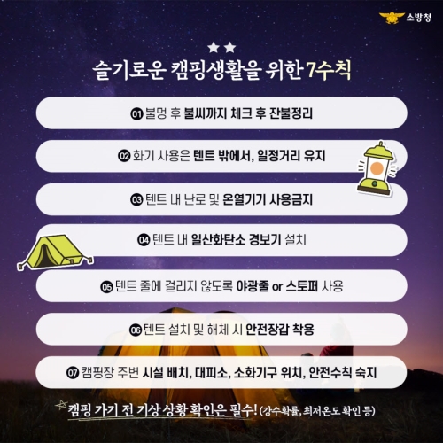 고흥소방서, 봄철 캠핑장 사고 예방 안전수칙 당부 사진 설명 고흥소방서(서장 서승호)는 기온이 상승하는 봄철 캠핑장 야영객이 증가함에 따라 화재와 안전사고에 대한 주의를 당부한다고 23일 말했다. 소방서에 따르면 봄철에는 강한 바..... 2024-04-23