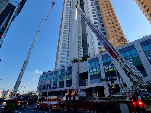 광양소방서 고층건물 화재진압훈련 실시하다. [해륙뉴스1]=서정민기자.광양소방서(서장 서승호)는 14일 오후 광양시 중동 소재 고층건축물 e편한세상(주상복합)아파트 화재진압훈련을 실시했다고 밝혔다. 광양시 중마동 e편한세상 ..... 2023-11-14