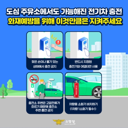 고흥소방서, 전기차 화재 예방 안전수칙 홍보 고흥소방서(서장 서승호)는 최근 전기차 화재가 빈번하게 발생함에 따라 전기차 안전수칙을 홍보한다고 20일 밝혔다. 전기차 화재는 과열(과충전), 배터리 결함, 외부 충격에 의한 화..... 2024-08-20