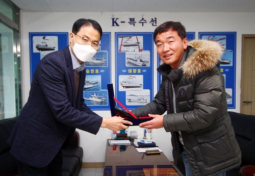 군산 케이특수선 한국해양교통안전공단 전북지사 감사패 전달 케이특수선 장승호 대표가 한국해양교통안전공단 전북지사 이사장에게 감사패를 전달하고 있다 / 해륙뉴스1 이상희 기자 케이특수선 장승호 대표가 한국해양교통안전공단 전북지사 이사장에게 ..... 2021-12-29