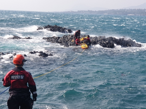 갯바위에 고립된 낚시객 해경 구조대 경찰관이 바다에 뛰어들어안전하게 구조하다.. - 서귀포해양경찰서(서장 도기범)는 오늘(15일) 오후 01시 43분경 서귀포 월평포구 인근 갯바위에서 고립된 낚시객 A씨를 구조했다고 밝혔다. - 월평포구 인근 올레길 관광객 B..... 2021-02-15
