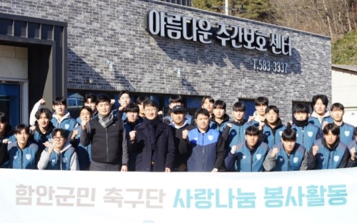 함안군민축구단, 사랑 나눔 봉사활동 실시 함안군은 지난 3일 함안군민축구단(단장 전창옥)이 2026시즌 첫 공식 일정으로 가야읍에 있는 ‘아름다운 동산 주간보호센터’에서 사랑 나눔 봉사활동을 진행했다고 밝혔다. 이날 봉사..... 2026-01-06