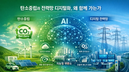 [데스크 칼럼] 탄소중립과 전력망 디지털화, 왜 함께 가는가? 탄소중립과 전력망 디지털화, 왜 함께 가는가(이미지=ChatGPT) 탄소중립 목표 달성에서 전력망 디지털화는 더 이상 선택이 아닌 전제 조건으로 떠오르고 있다. 태양광·풍력 등 재..... 2026-01-06
