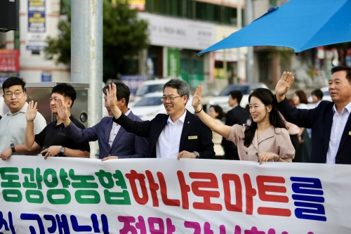 [광양] 동광양농협, ‘하나로마트 방문 고객 감사’ 거리 캠페인 펼쳐 동광양농협(조합장 이돈성)은 23일 광양시 컨테이너부두사거리에서 추석 명절 기간 하나로마트 방문 고객을 위한 감사 캠페인을 펼쳤다. 이날 캠페인은 이돈성 조합장을 비롯하여 임직원 ..... 2024-09-24
