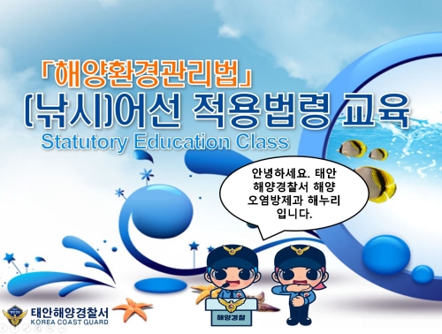 [태안해경]김성필 본부장= 어선 적용 해양환경관리법 법령정보 동영상 제작‧배포 태안해양경찰서(서장 송민웅)는 21일 태안관내 어업인 대상으로 어선에 적용되는 해양환경관리법 법령정보를 제공하는 동영상을 배포하였다고 밝혔다. 이번 동영상 배포는 해양환경관리법의 ..... 2023-09-27