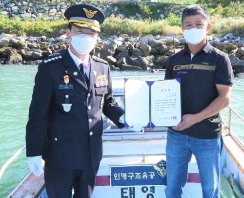 완도해경, 인명구조업무 유공자에게 감사장 수여 - 완도해양경찰서(서장 박제수)는 지난 5일 추석연휴 기간 해상투신자 구조와 전복선박 승선원 구조 등 인명구조에 혁혁한 공을 세운 구조자 3명에게 감사장과 인명구조 명패를 수여했다..... 2020-10-06