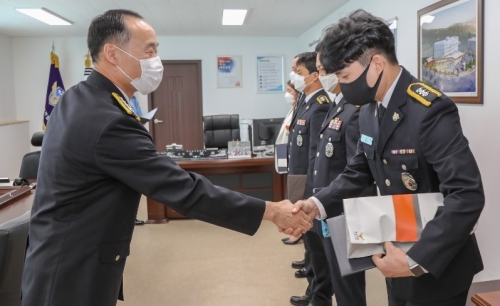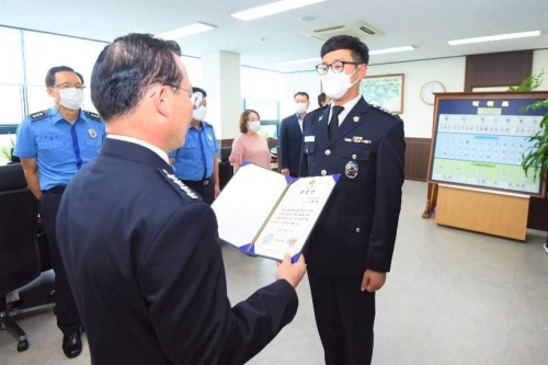 완도해경, 선박 해상 추락 익수자 구조한 유공자 표창수여 - 선제적 대응을 통해 인명구조와 2차 피해 예방 - 완도해양경찰서(서장 박제수)는 11일 3층 서장실에서 각 과장이 참석한 가운데 오전 해상에 추락한 익수자를 구한 이한솔 경사(..... 2020-09-12