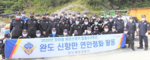 완도해경, 해양경찰의 날을 맞아 신항만 해양정화 활동 실시 완도해양경찰서(서장 박제수)는 코로나19 확산 등으로 인해 오는 9월 10일 제67주년 해양경찰의 날을 간소화하여 기념한다는 취지에 따라 완도군 신항만에서 해양정화 활동을 벌였다고..... 2020-08-31