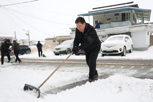무안군이 군민 안전 확보를 위해 시가지 제설 작업에 총력을 기울이다. ㅡ 여러장의 사진입니다. 터치하시면 많은 이미지를 볼 수 있습니다 ㅡ 사진설명 김산 군수와 군청 직원들이 무안읍 시가지에서 제설작업에 참여하고 있는 모습(사진제공=무안군) [해륙뉴..... 2026-01-02
