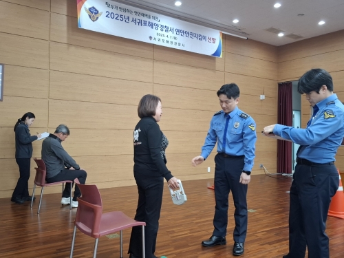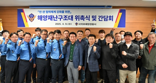 [서귀포]=서귀포해경 ㆍ서귀포 해양재난구조대 위촉, 민‧관 구조 협력 강화 서귀포해양경찰서(서장 김서구)는 오늘(9일) 서귀포해양경찰서 오름홀에서 강두영 대장 등 간부급 대원에 대한 해양재난구조대* 위촉식을 개최했다고 밝혔다. * 지난 1월 해양재난구조대..... 2025-04-09
