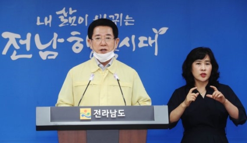 김영록 전남지사, ‘코로나19’ 35번째 확진자 긴급 발표 김영록 전라남도지사는 19일 “코로나19 지역 감염자인 전남 35번 확진자가 발생했으며, ‘사회적 거리두기 2단계’를 25일까지 연장한다”고 밝혔다. 김 지사는 이날 도청 브리핑룸..... 2020-07-19