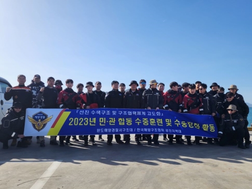[완도해경]김성필 본부장= 민·관 구조파트너 합동 수중 훈련·정화 나서 - 완도구조대·한국해양구조협회(강진), 구조역량 강화와 해양 환경 정화하다 - 완도해양경찰서(서장 박기정)는 지난 7일 “마량항 내 인근 해상에서 구조능력 강화와 깨끗한 바다환경을..... 2023-12-08