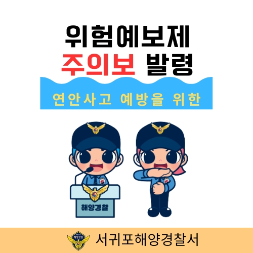 [서귀포]=서귀포해경ㆍ연안 안전사고 위험예보제 「주의보」 발령 서귀포해양경찰서(서장 윤태연)는 내일(15일)부터 기상특보 해제시까지 연안 안전사고 위험예보제 「주의보」 단계를 발령한다고 밝혔다. 제주도 전 해상에 강한 바람과(10∼18m/s)..... 2023-12-14
