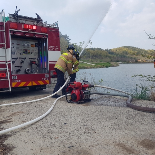 고흥소방서, 소방차량 자연수리 흡수훈련 실시 사진 설명 전남 고흥소방서(서장 박상진) 도양119안전센터는 9일 도양읍 대분저수지에서 자연수리를 이용한 흡수와 방수훈련을 실시했다고 밝혔다. 이번 훈련은 화재 발생 시 인근에 소..... 2021-04-10