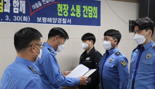 [김갑성기자]=[보령해경ㆍ소통은‘만사형통의 지름길] - 김홍희 해양경찰청장 보령해경 방문, 현장 직원들과 허심탄회한 소통 간담회 시간 가져 - 김홍희 해양경찰청장이 30일 보령해양경찰서에 방문해 일선에서 묵묵히 최선을 다한 직원들의..... 2021-03-30