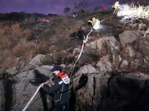 완도해경, 어룡도 야산 화재 진압 긴급지원 - 완도소방서와 합동으로 산불 초기 진압, 큰 피해 막아 - 완도해양경찰서(서장 박기정)는 지난 29일 오후 5시 30분경 전남 완도군 노화읍 어룡도 야산에서 화재가 발생했다는 신..... 2023-01-30