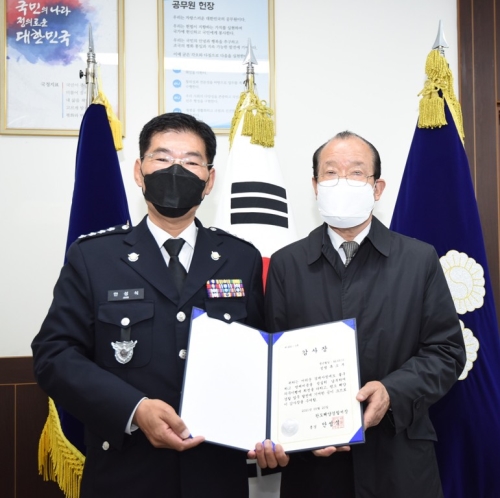 완도해경, 방제비용 성실납부자 감사장 수여 - 방제비용 3천여만원, 7년간 67회 분할 완납 - 완도해양경찰서(서장 안성식)는 지난 2012년도 예인선 좌주 해양오염 사고관련 발생된 방제비용을 최근에 완납한 A씨(80세)에..... 2021-05-24