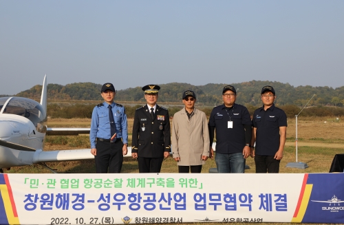 창원해경, 민간항공업체와 업무협약(MOU) 체결 창원해양경찰서(서장 류용환)는 오늘(27일) 적극행정의 일환으로 성우항공산업(대표 최정, 경남 함안군 소재)과 해상치안, 수색구조 및 해양오염 감시활동 협력체계 구축을 위한 업무협..... 2022-10-27