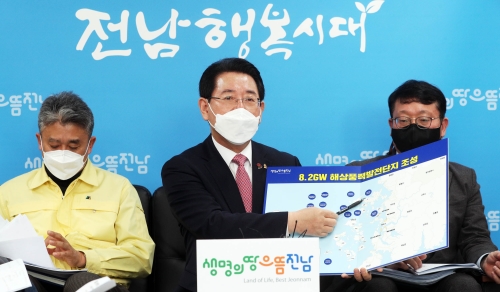 김영록 지사, 해상풍력발전단지 특별법 등 현안 지원 건의 사진 설명 김영록 전라남도지사는 8일 “문재인 대통령에게 해상풍력발전단지 조성기간 단축 등 전남의 핵심 현안 해결을 위한 대책 마련을 건의하고 후속절차를 차질없이 추진하겠다”고 밝..... 2021-02-09