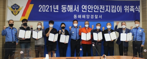 동해해경, 연안안전지킴이 위촉식 개최 - 지역 일자리 창출과 연안 안전관리 강화 - 동해해양경찰서(서장 정태경)는 지난 29일 연안사고 예방을 위해 지역주민이 직접 연안 해역 안전관리 업무를 지원하는 ‘2021년 연안..... 2021-04-30