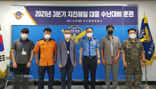 속초해경, 지진해일 대응 수난대비 기본훈련 실시 속초해양경찰서(서장 박승규)는 24일 수난구호 협력기관 ․ 단체 등이 참여하는 2021년 지진해일 대응 수난대비 기본훈련을 실시했다고 밝혔다. 이번 훈련은 일본에서 발생한 지진해일..... 2021-08-24