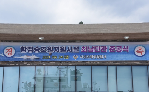 서귀포해경, 함정승조원 지원시설 ‘최남단관’ 준공식 개최 서귀포해양경찰서(서장 황준현)는 오늘(24일) 오후 서귀포시 안덕면 화순항에 위치한 함정승조원 지원시설 ‘최남단관’의 준공식을 가졌다고 밝혔다. 이날 행사에는 코로나19 확산 방지..... 2021-09-24
