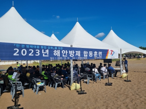서귀포해경ㆍ대규모 해양오염 사고 대비 해안방제 합동훈련 서귀포해양경찰서(서장 윤태연)는 어제(18일) 오후 2시 서귀포시 안덕면 화순항 일대에서 유조선의 화물유가 유출되어 해안이 오염되는 사고를 가정한 ‘2023년 해안방제 합동훈련’을..... 2023-10-19