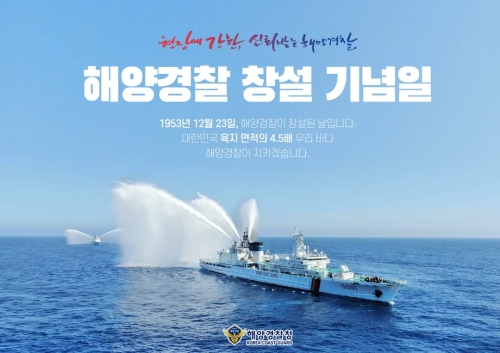 해양경찰청ㆍ1953년 12월 23일, 해양경찰이 창설된 날입니다. - 대한민국 육지 면적의 4.5배 광활한 우리 바다 - 안전하고 깨끗한 바다를 만들기 위해 해양경찰은 오늘도 바다로 출항합니다. #해양경찰 #창설기념일 #바다 2020-12-23