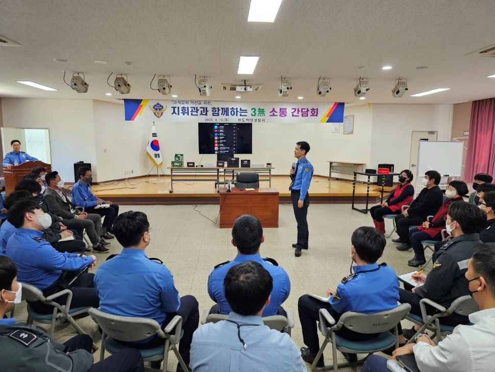 완도해양경찰서(서장 박기정)는 지난 13일 조직문화 내 유대감 형성과 업무 효율성을 도모하기 위해 지휘관과 함께하는 3無 소통간담회를 가졌다고 밝혔다.