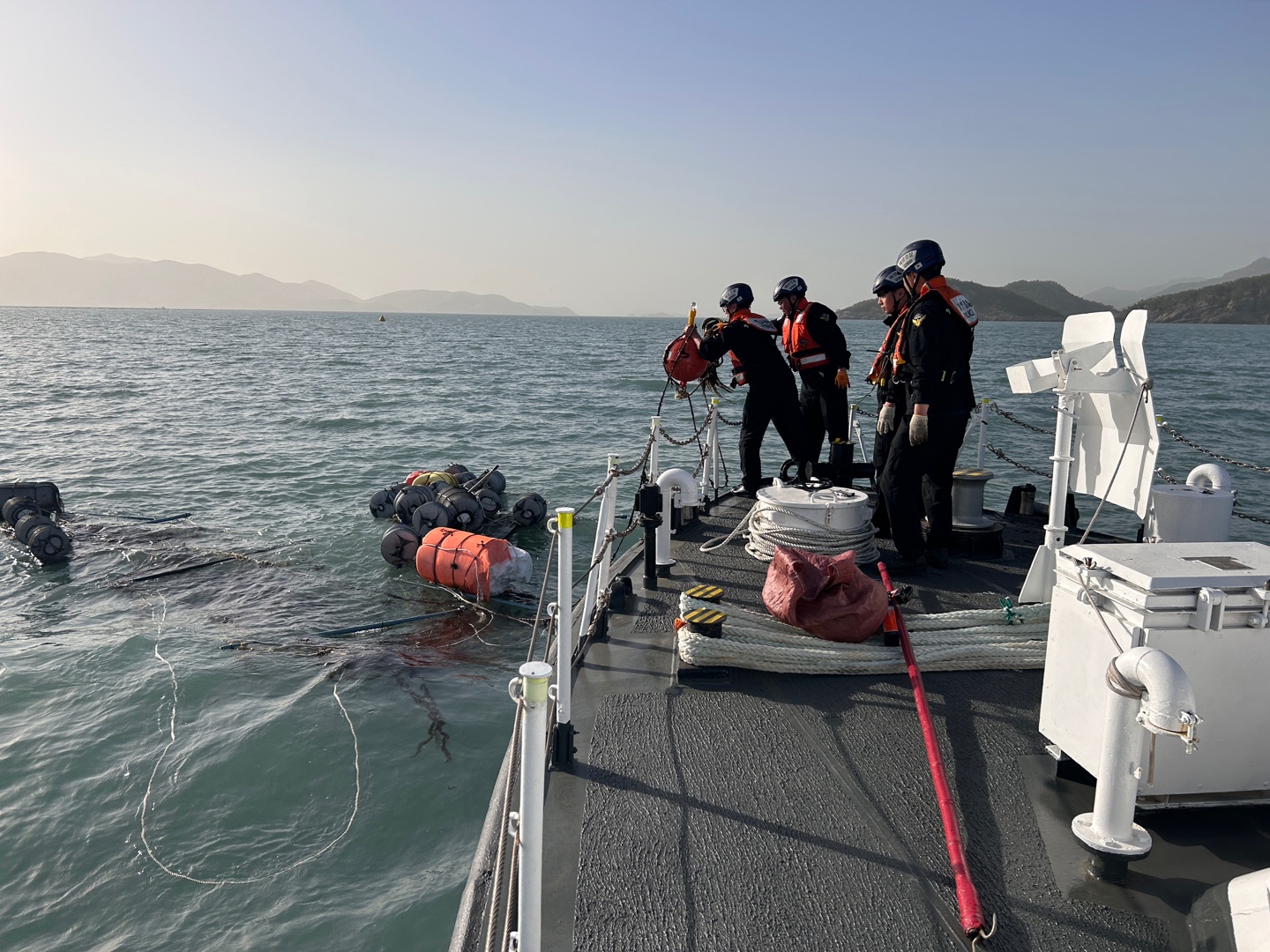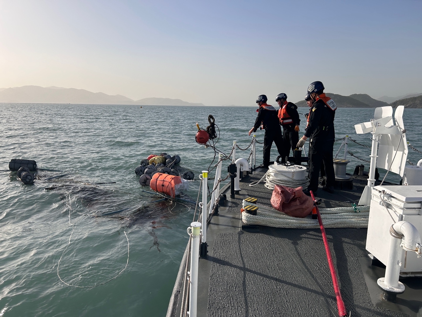 약 50m 폐 어망(김 양식장 자재)을 발견하여 2차 사고를 예방조치하고 지자체에 수거토록 통보했다.