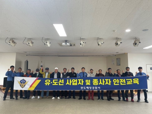 사진 설명 완도해양경찰서(서장 박기정)는 지난 19일 3층 대강당에서 유ㆍ도선 사업자와 종사자 16명을 대상...