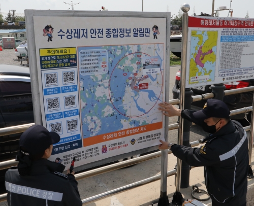목포해경이 삼호소형어선 물양장에서 수상레저 안전수칙 및 항행위험정보 등을 안내하는 수상레저 안전정보 알림...