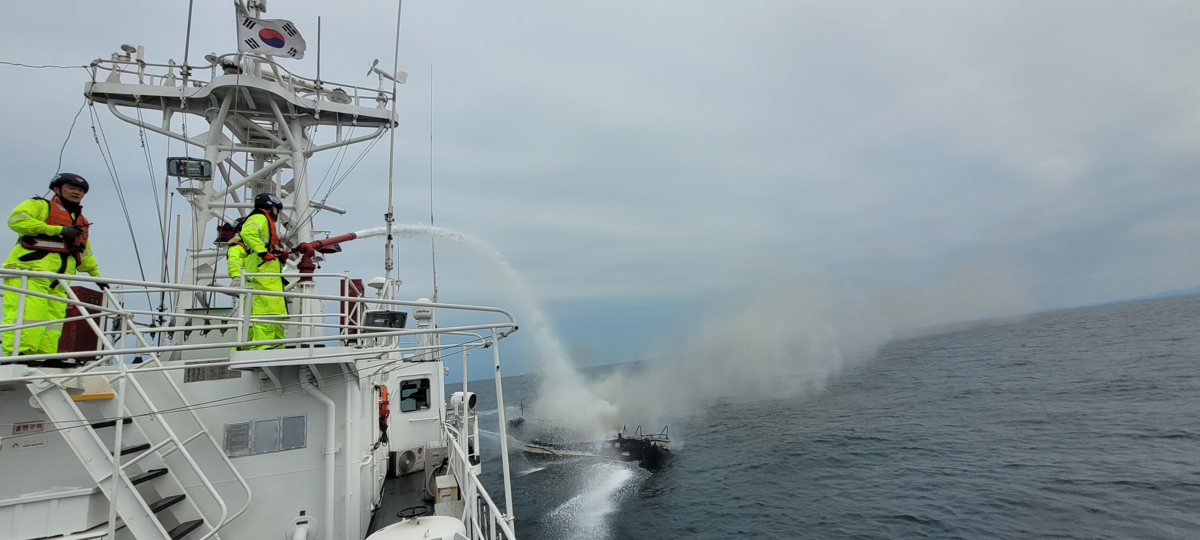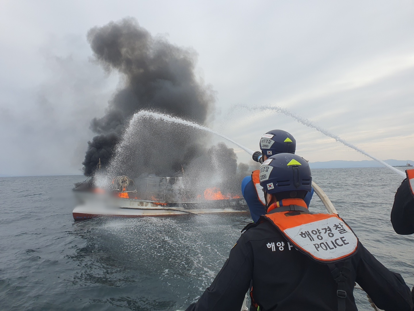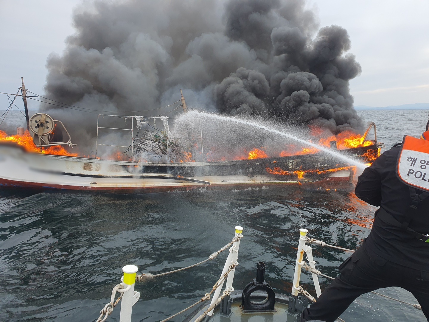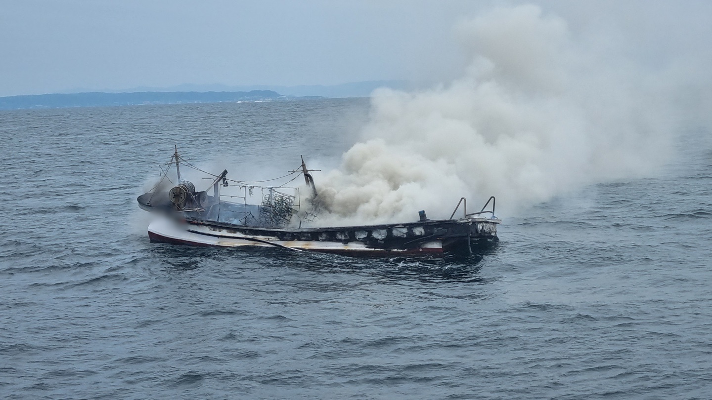 어선 A호는 경비함정의 소화작업 중 수면 아래로 침몰했다.