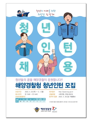 서해해경청은 이번 채용을 통해 청년인턴 총 13명을 선발할 계획이며, 원서 접수 기한은 5월 1일이다.