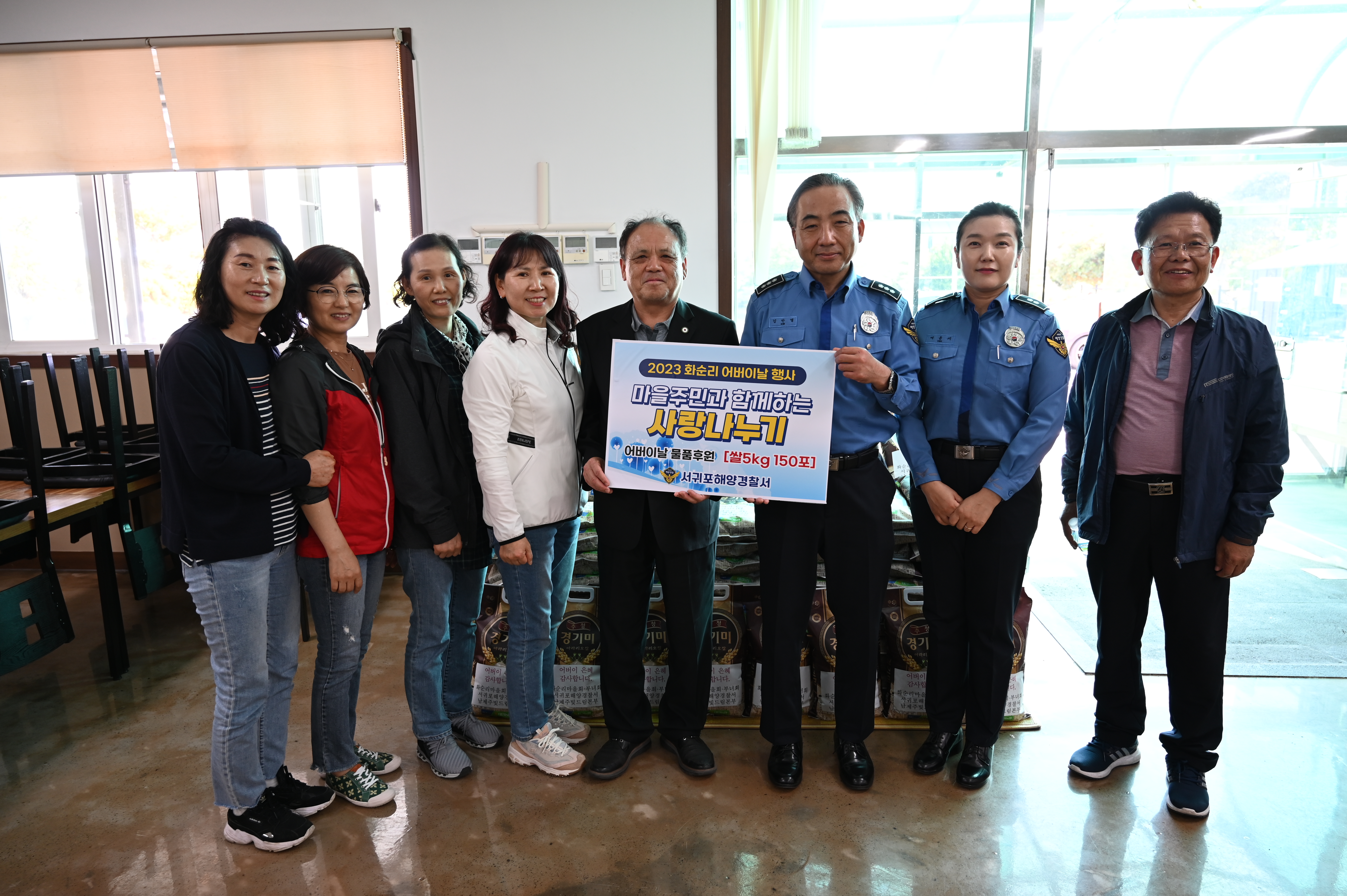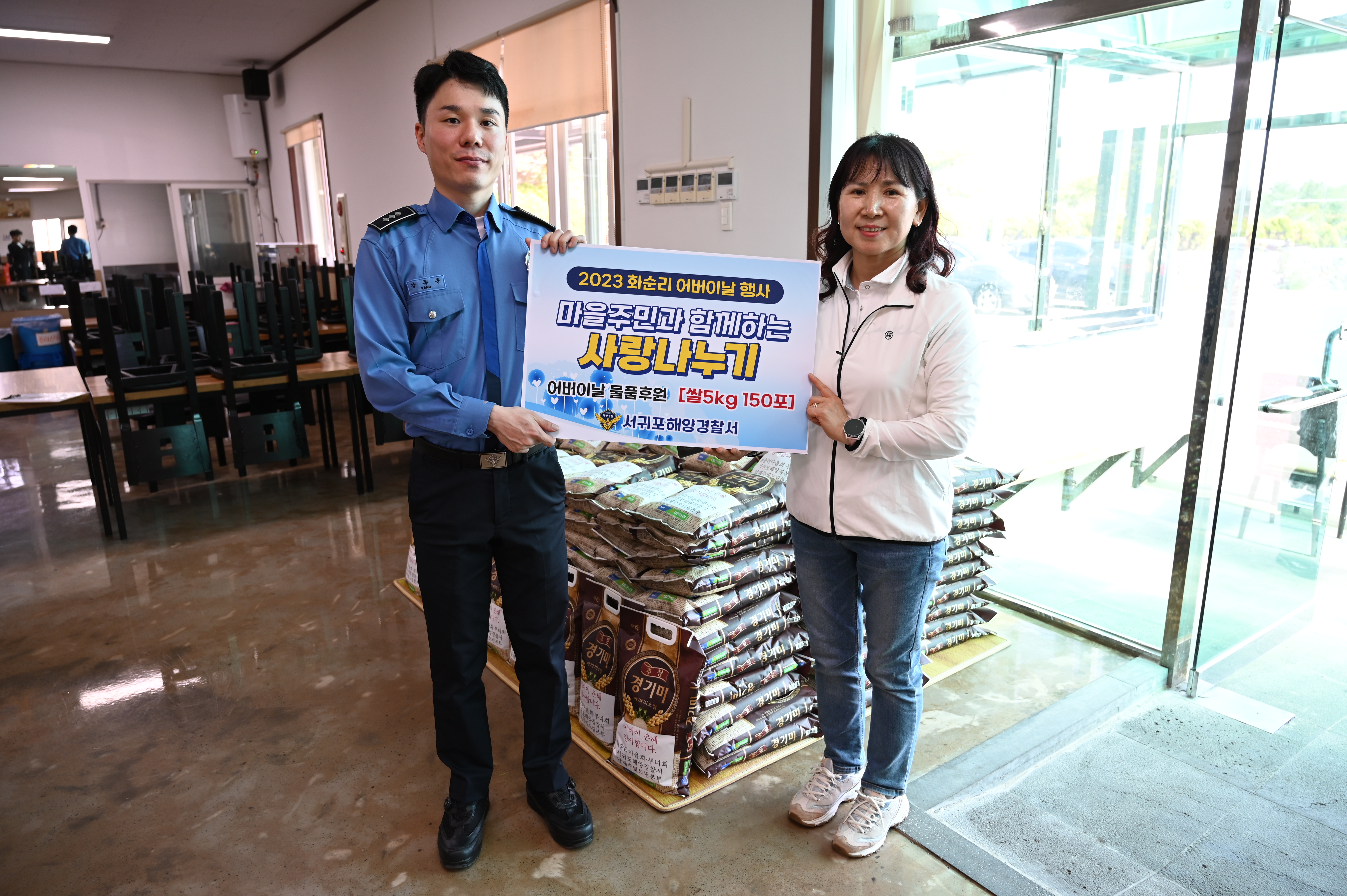 서귀포해양경찰서(서장 윤태연)는 어버이날을 맞이하여 어제(2일) 오후 화순리 마을에 거주하시는 (만)65세 이상의 주민들을 위해 쌀5㎏ 총 150포를 나눔 행사를 열어 훈훈한 소식을 전했다.