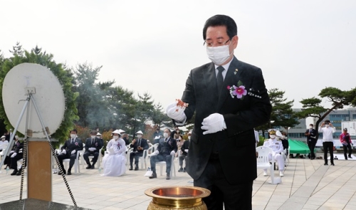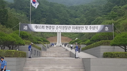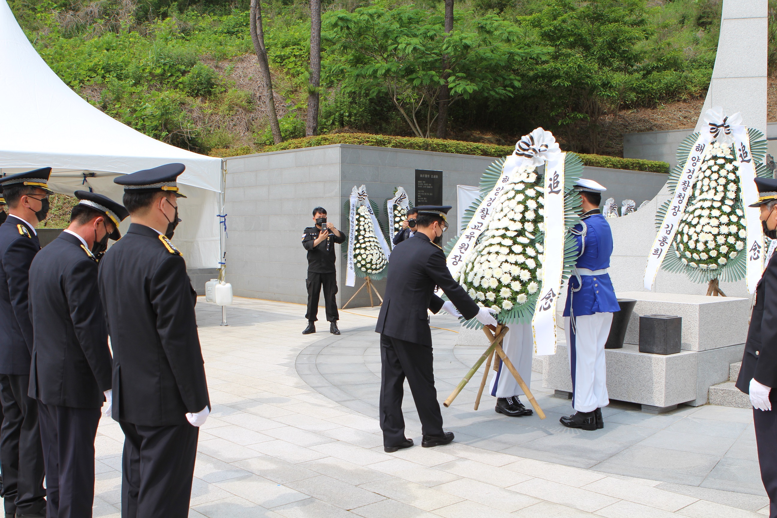 한편, 해양경찰교육원은 최근 수도권에서 불거진 코로나19 확산 방지를 위해 마스크 착용과 발열검사, 간격 두고 앉기 등 감염병 예방 수칙을 준수하며 추념식 행사를 진행했다.