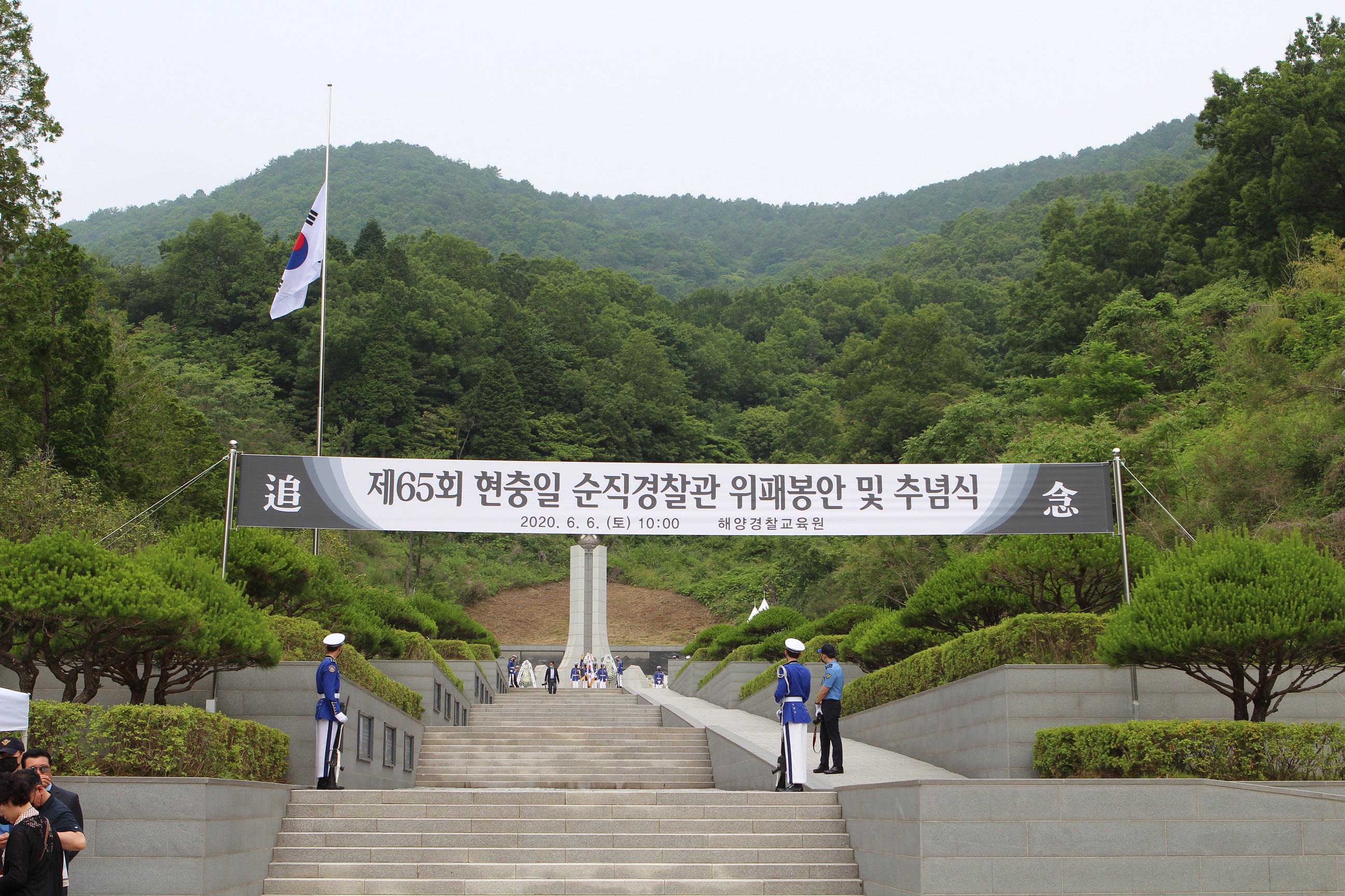 - 해양경찰교육원(원장 고명석)은 제65회 현충일을 맞아 6일 오전 국가현충시설인 교육원 내 충혼탑에서 호국영령의 충절과 순직 해양경찰관의 숭고한 희생정신을 기리는 추념식을 개최했다고 이날 밝혔다. -