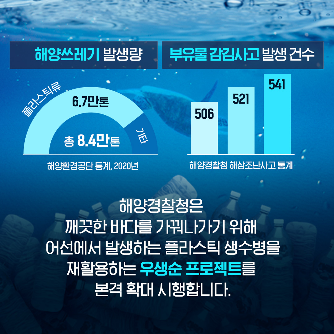 이에 해양경찰은 어선에서 발생하는 플라스틱 중 하나인 폐생수병을 모아 재활용함으로써