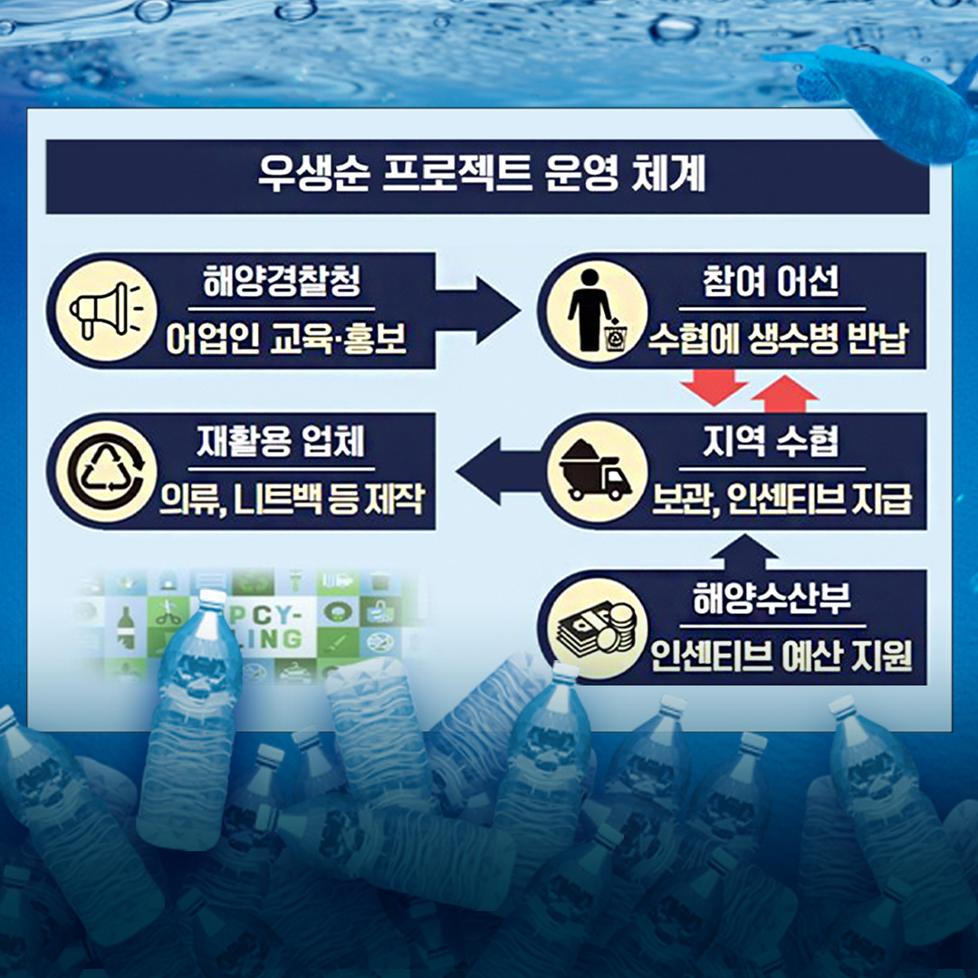 이달 10일부터 어선에서 발생하는 플라스틱 생수병을 재활용하고자 ‘우생순 프로젝트’를 시행한다고 밝혔다.