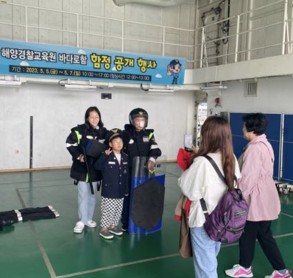어린이 해양경찰 정복입기, 진압장비 착용 체험, 기념사진 촬영 등 다채로운 프로그램이 진행됐다.