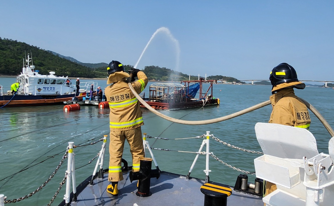 인근 해상에서 바지선 A호에 화재가 발생했다는 신고를 접수, 경비함정과 연안구조정, 민간해양구조대 등