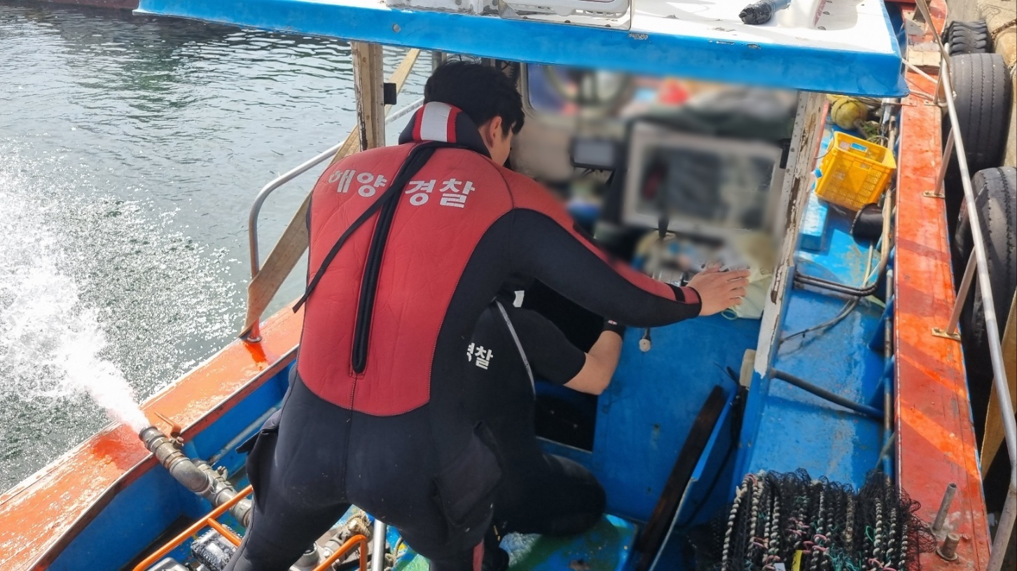뒤이어 도착한 포항구조대는 수영으로 접근해 선장의 건강상태를 확인한 후 기관실이 50cm 정도