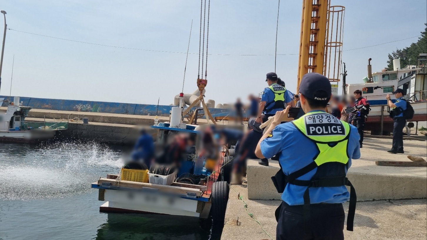 가장 먼저 도착한 영일만파출소 연안구조정은 해안에서 약 20미터 떨어진 지점에서 오른쪽으로 30도 정도