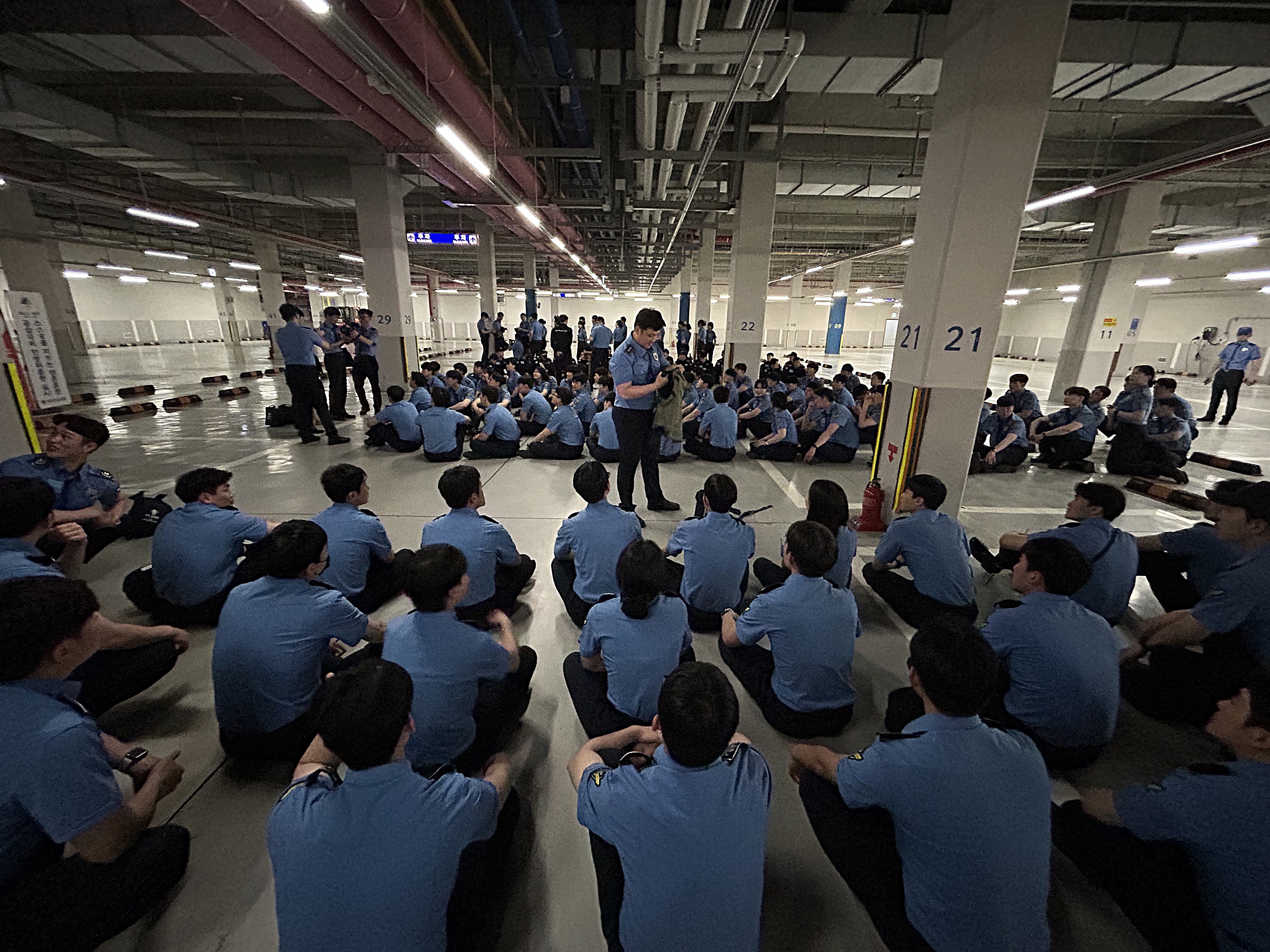 안내로 신속하게 가장 가까운 지하주차장과 소강당, 생활동 등 12곳의 지정 장소로 대피했다.