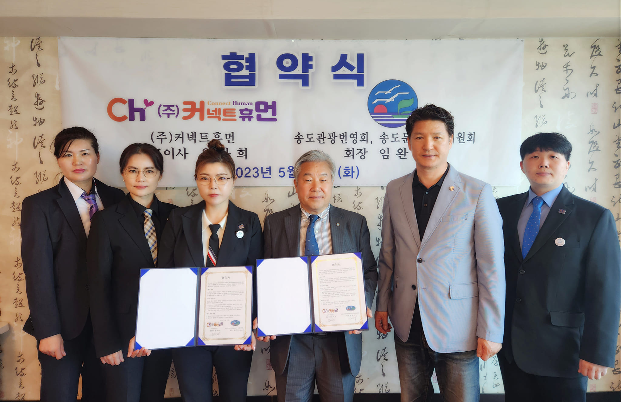 글로벌 B2B, B2C 전문 소개 플랫폼 사회적 기업인 (주) 커넥트 휴먼 (대표이사 유라희)과 부산 송도에서 1957년 설립하여 현재 회원수 200명 이상의 송도관광번영회와 함께하는 송도문화축제위원회 (회장 임완수, 홍보실장 박우열)는 양사 간의 신뢰를 바탕으로 상생 협업을 위해 지난 16일 부산 계열사 실무진들 참석하에 협약식을 진행하였다.