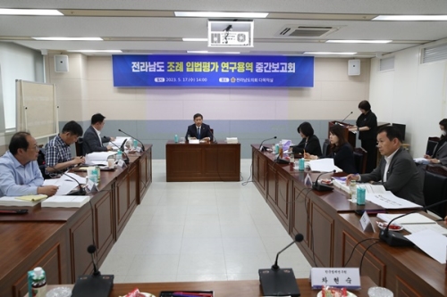 전라남도의회(의장 서동욱)는 지난 17일 도의회 다목적실에서 ‘전라남도 조례 입법평가 연구용역’ 중간보고회를...